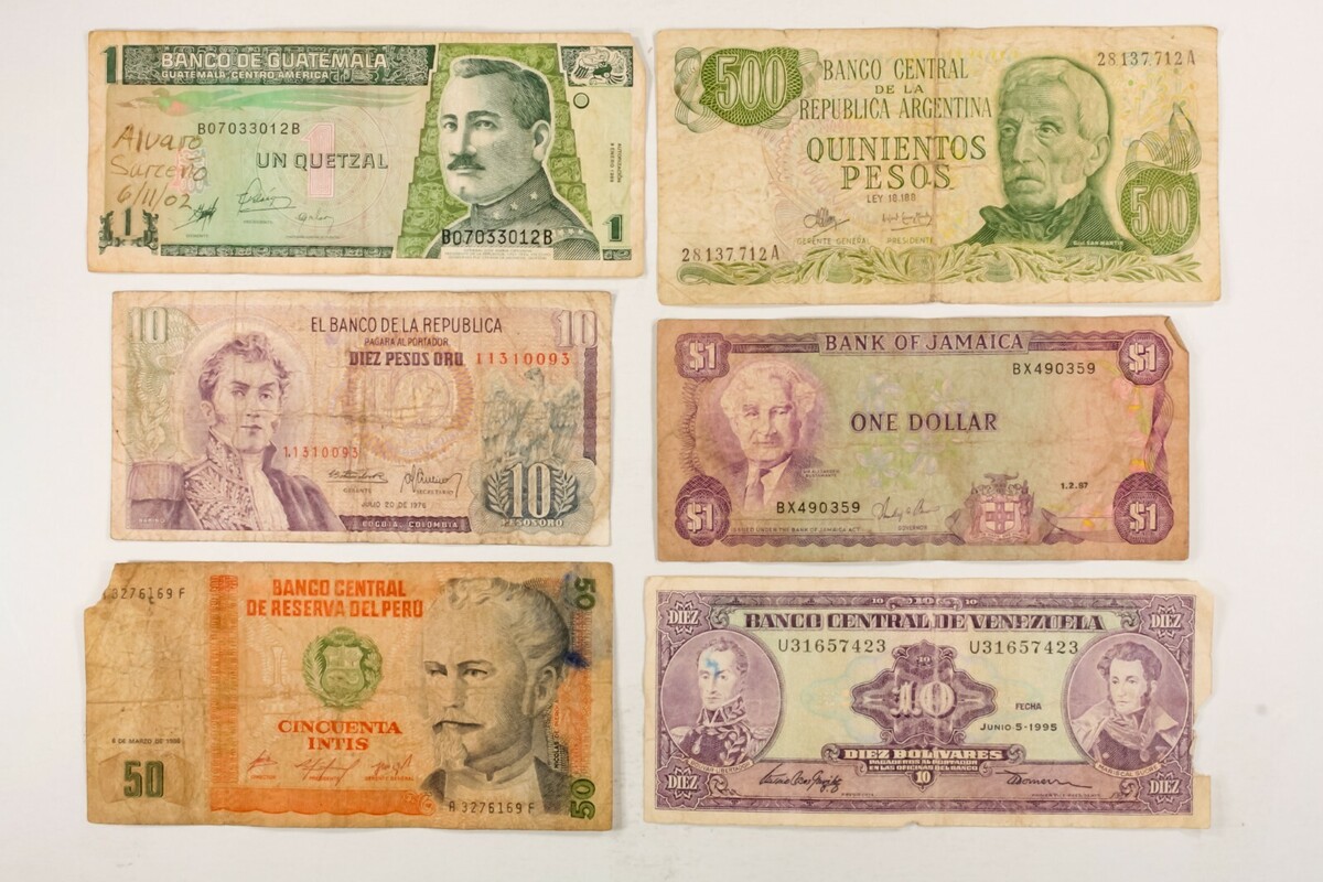 50 Welt Banknotes. Europa, Asien, Zentral Südamerika