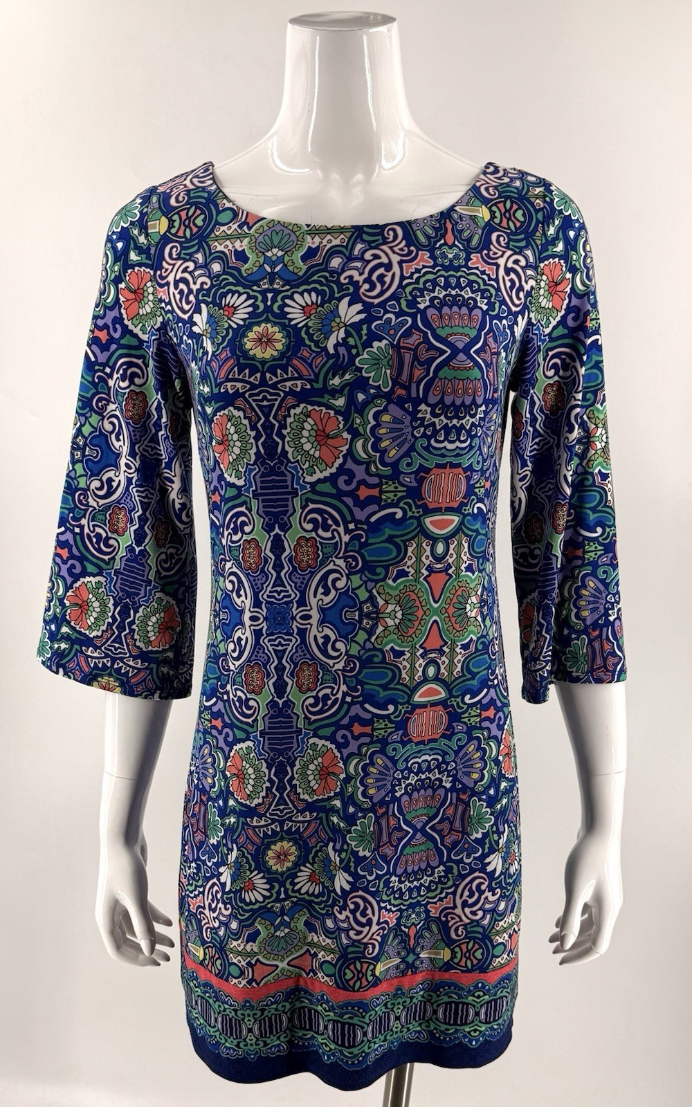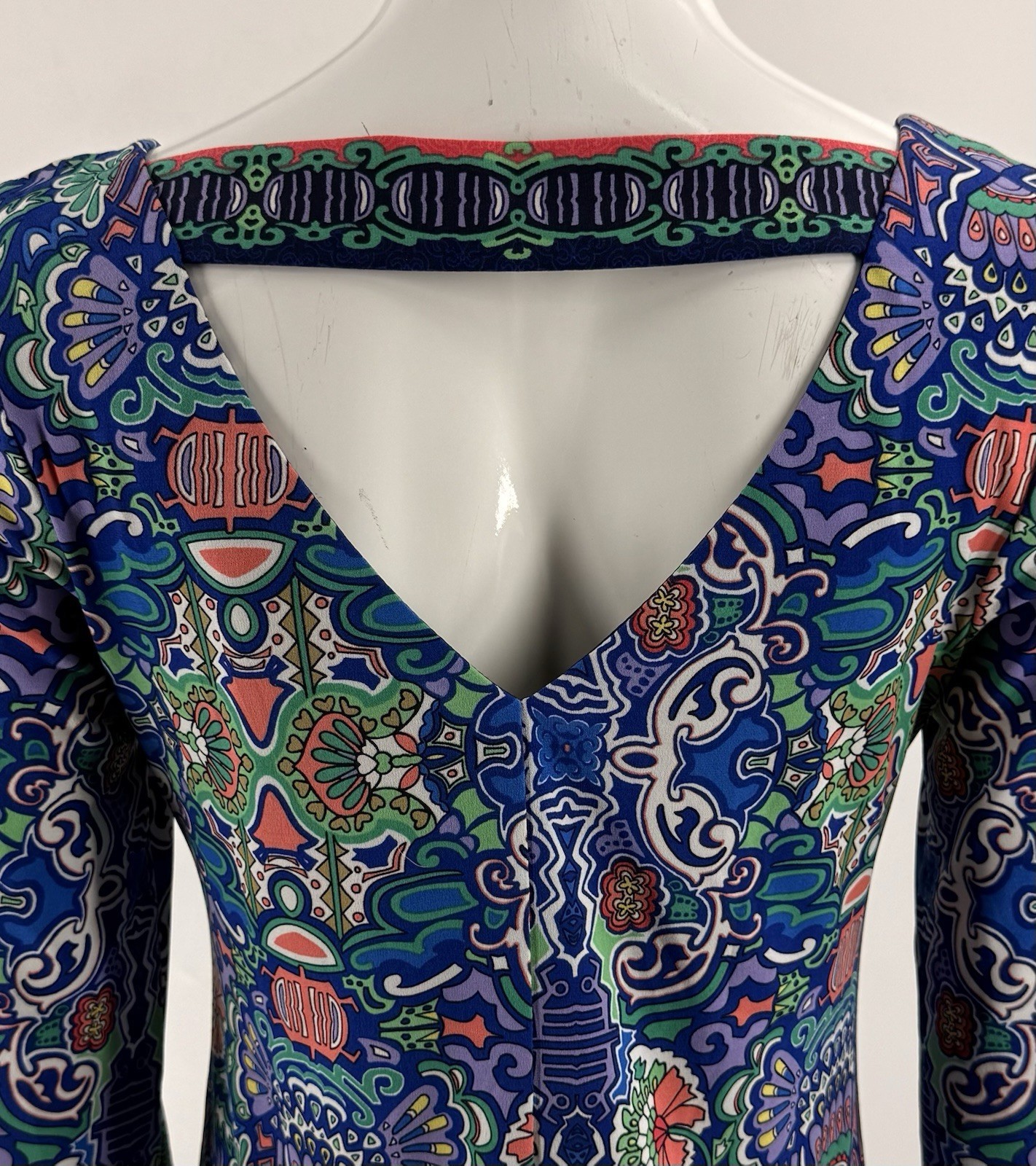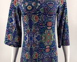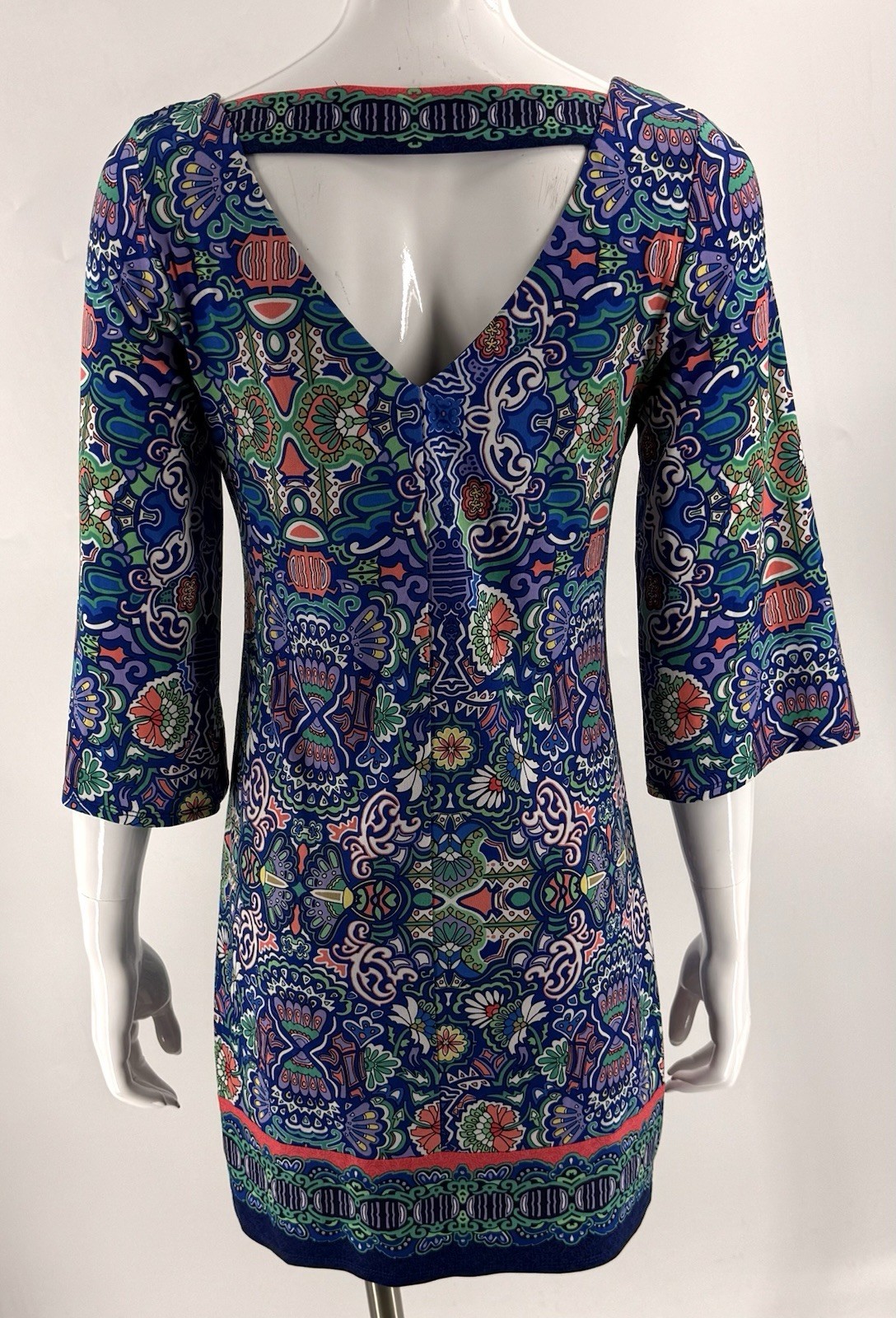 Laundry Shelli Segal Dress Size XS Blue Green Colorful Bell Sleeve Cutout Back