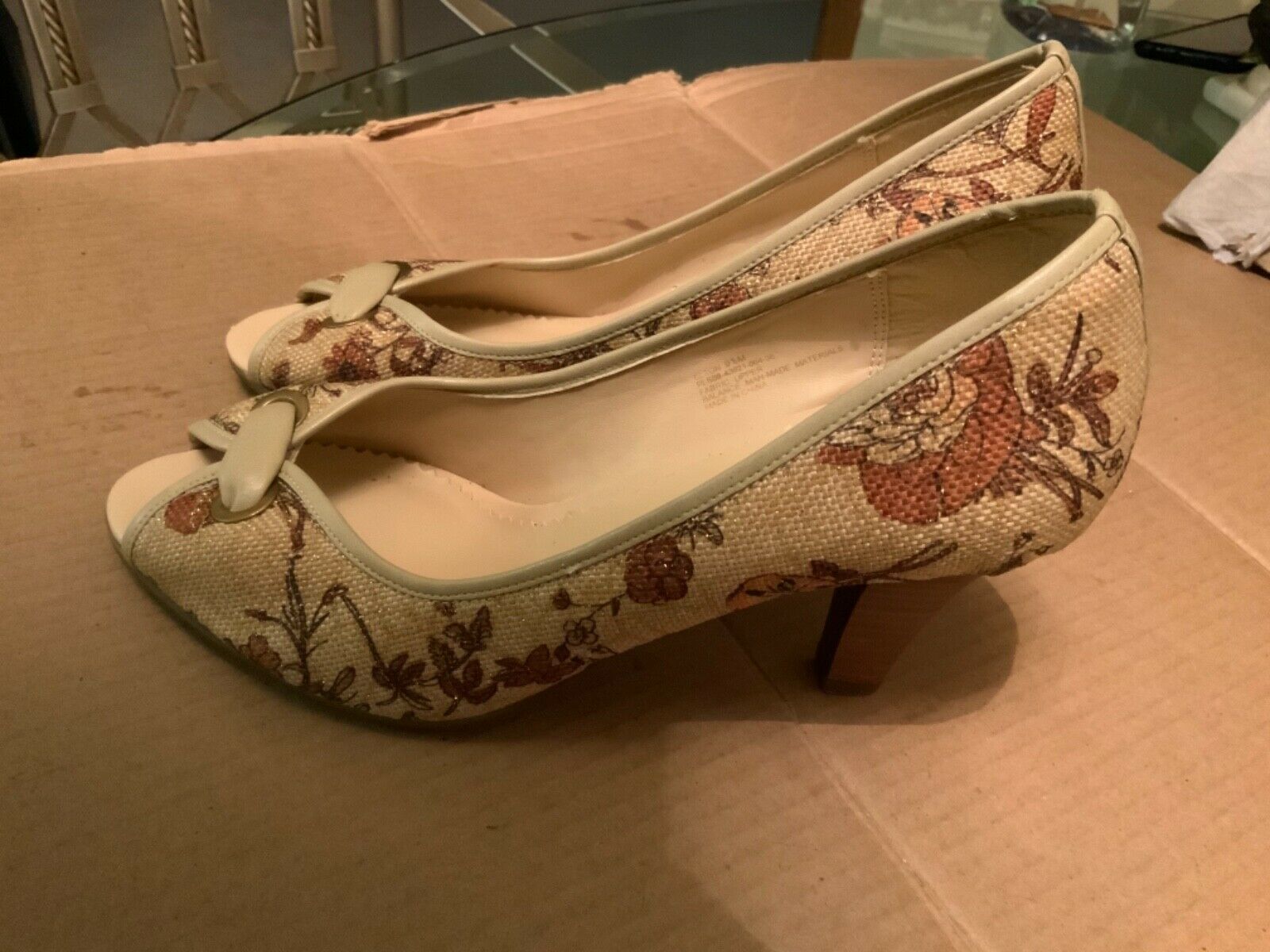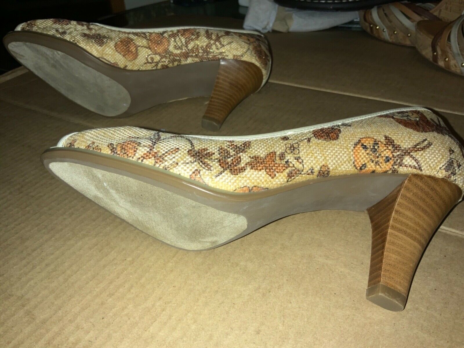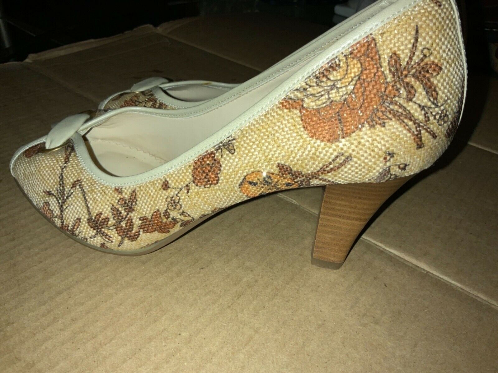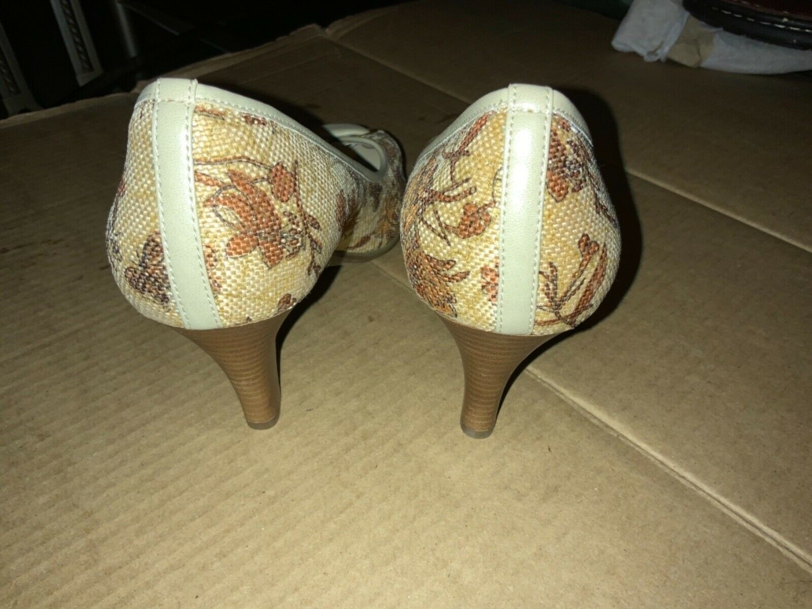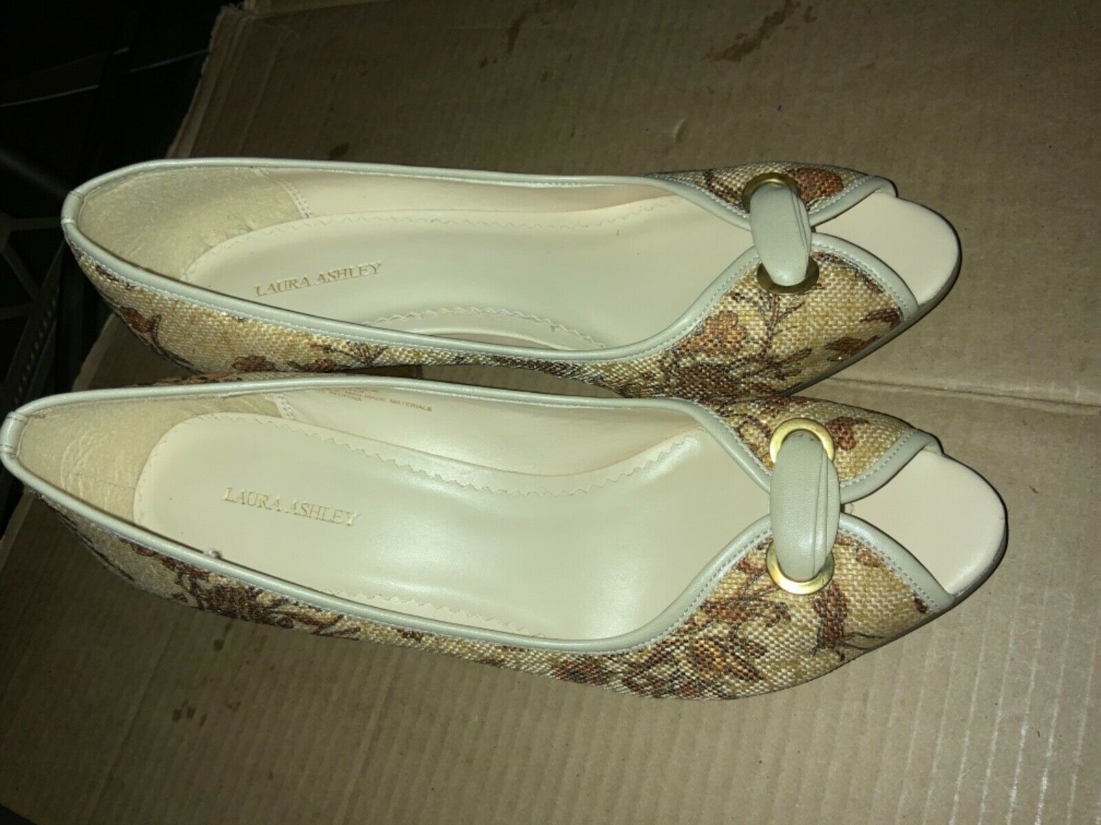 - Laura Ashley Peep Toe Pumps Elton Model Beige Brown Metallic GoldThread Size 9.5