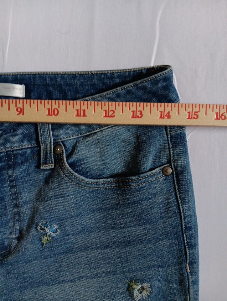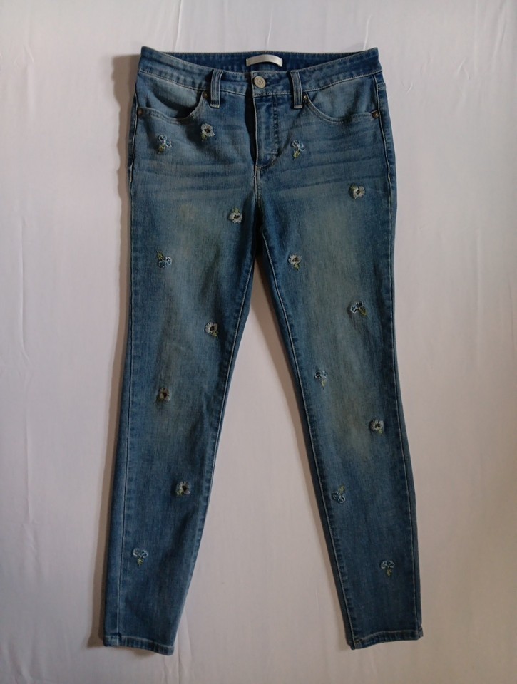 - Lauren Conrad Jeans Flower Embroidery Super Skinny Size 8 Light Blue Fade
