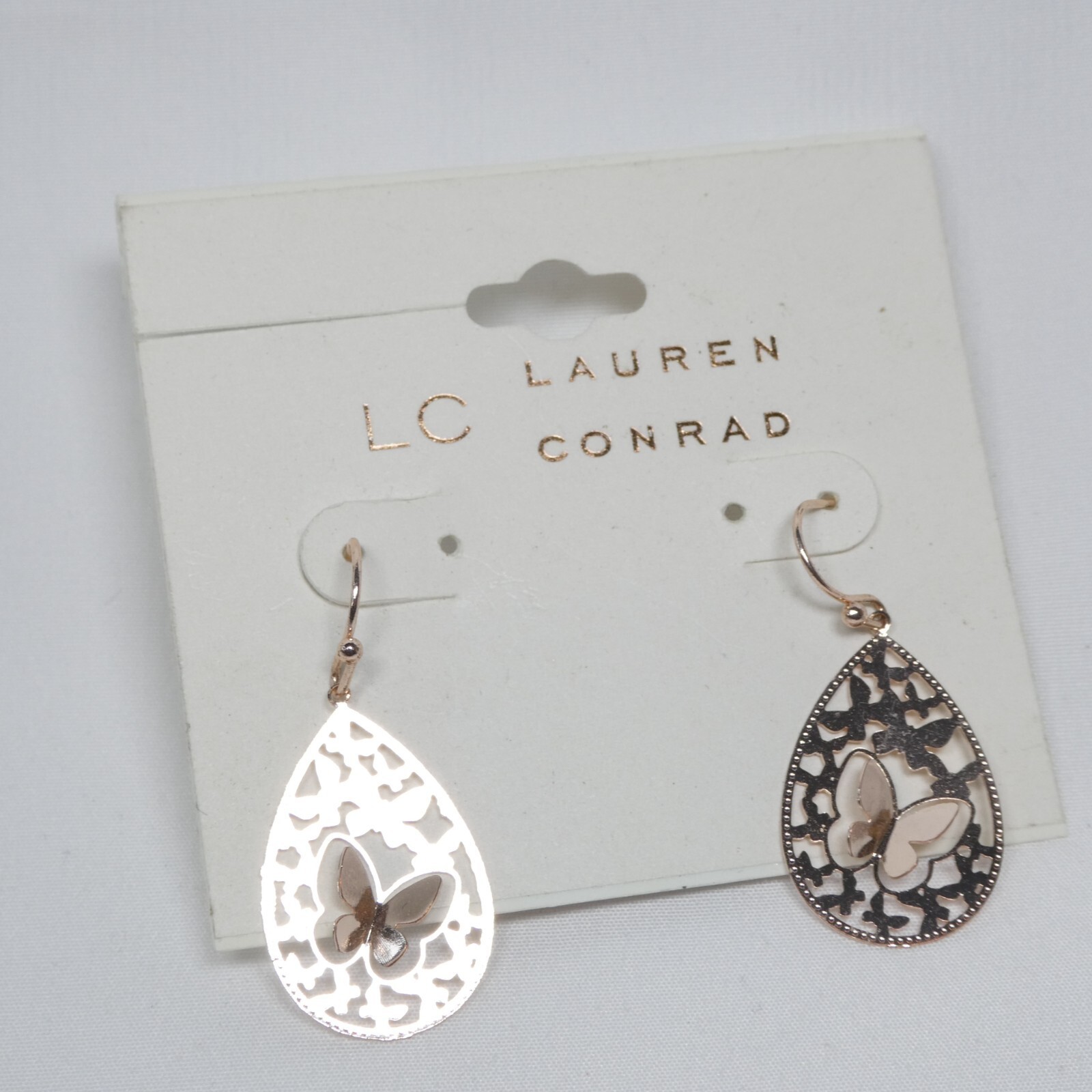 - Lauren Conrad Rose Gold Tone Teardrop Butterfly Dangle Pierced Earrings NWT NEW