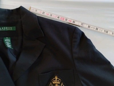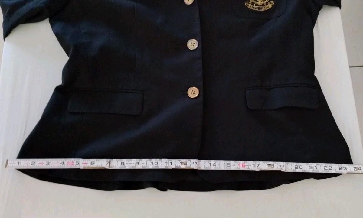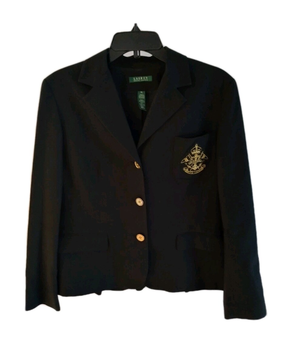 - Lauren Ralph Lauren Crest Blazer Womens Black Gold Button Embroidered Petite XL