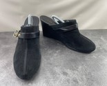 - Lauren Ralph Lauren Mules Women 9B Yassina Wedge Shoes Black Leather Suede Strap