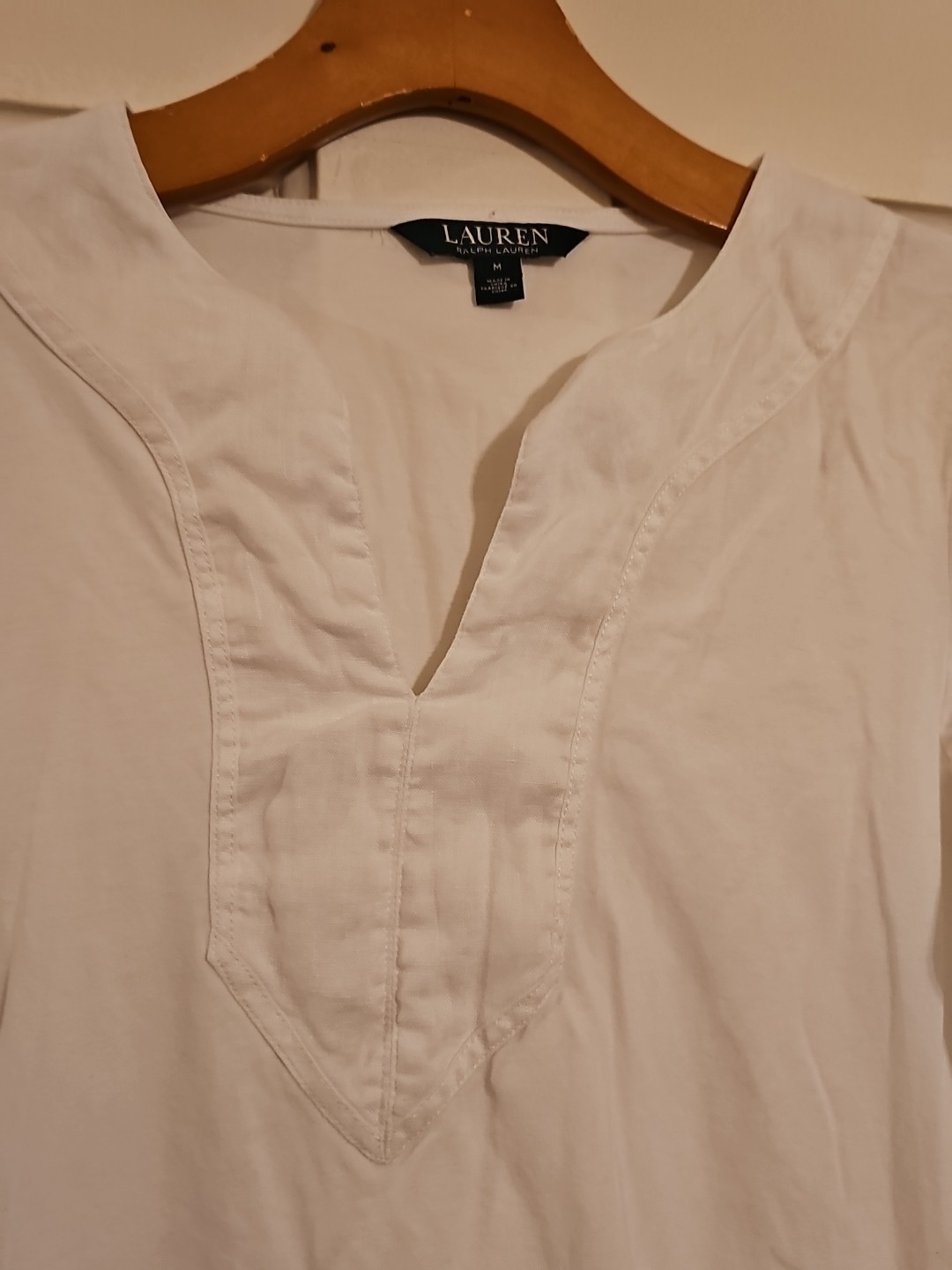 - Lauren Ralph Lauren Womens 3/4 Sleeve White Shirt Blouse Euc M Medium
