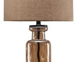 Transparency is in style with this table lamp. A unique pattern reflects in the faceted base as light passes through. Antique bronze-tone metal beautifully complements the champagne glass finish. Burlap shade adds texture to the smooth design.Additional Dimensions Shade: 0" Cord length: 93" Base: 0" Product Features Made of glass and metal with fabric drum shade 3-way switch 1 type A bulb (not included); 100 watts max or CFL 23 watts max; UL Listed Clean with a soft, dry cloth Assembly required Laurentia - Glass Table Lamp - Champagne12.88"W x 12.88"D x 28.0"H - 7.0 lb
