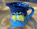 - LAURIE GATES Ware Glazed Ceramic PITCHER Blue with Fruit