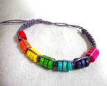 - LAVENDER PURPLE MACRAME w COLORFUL RAINBOW WOOD BEADS TIE ON BRACELET OR ANKLET
