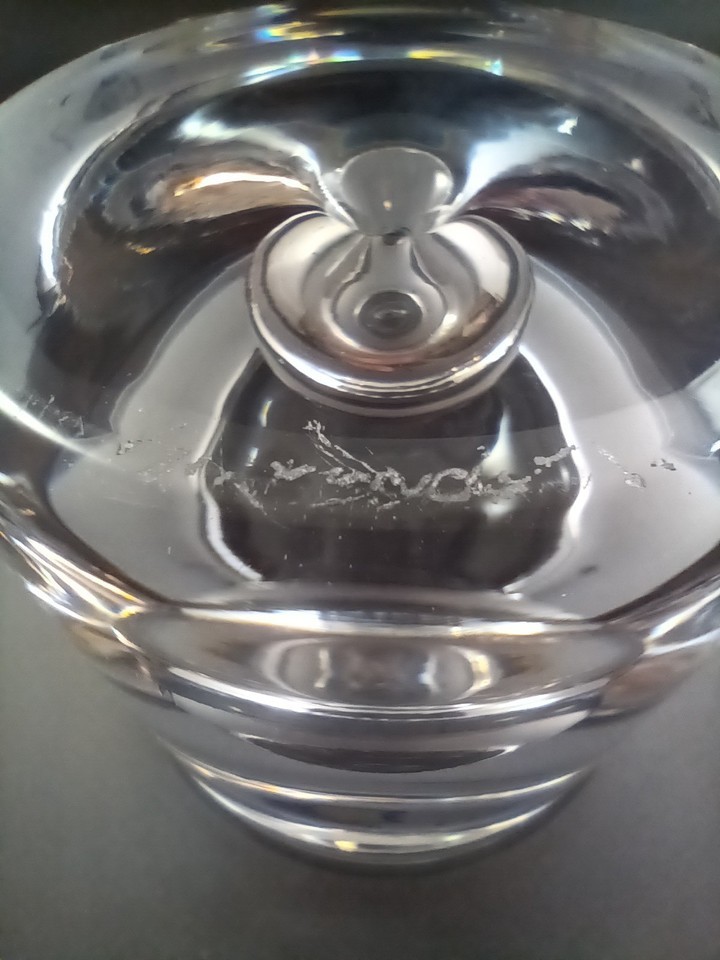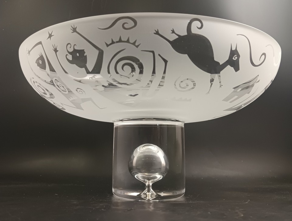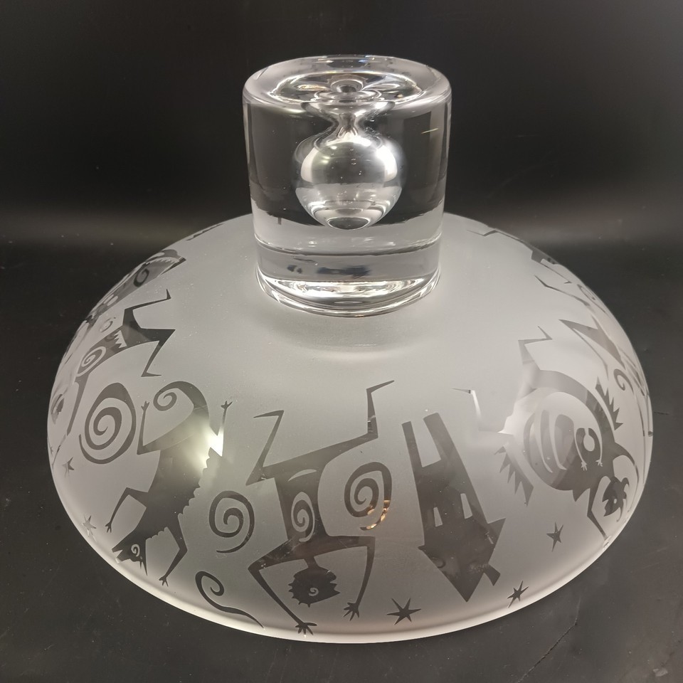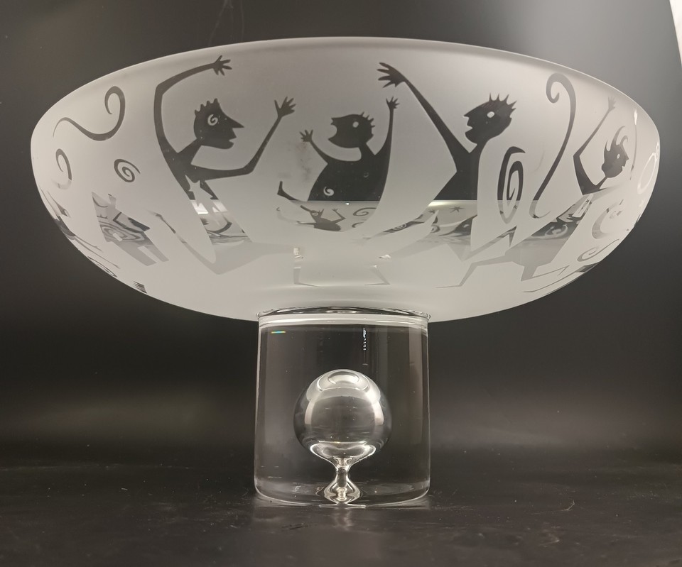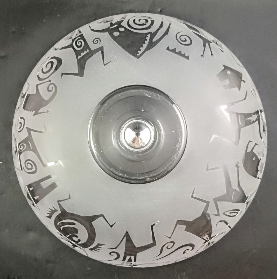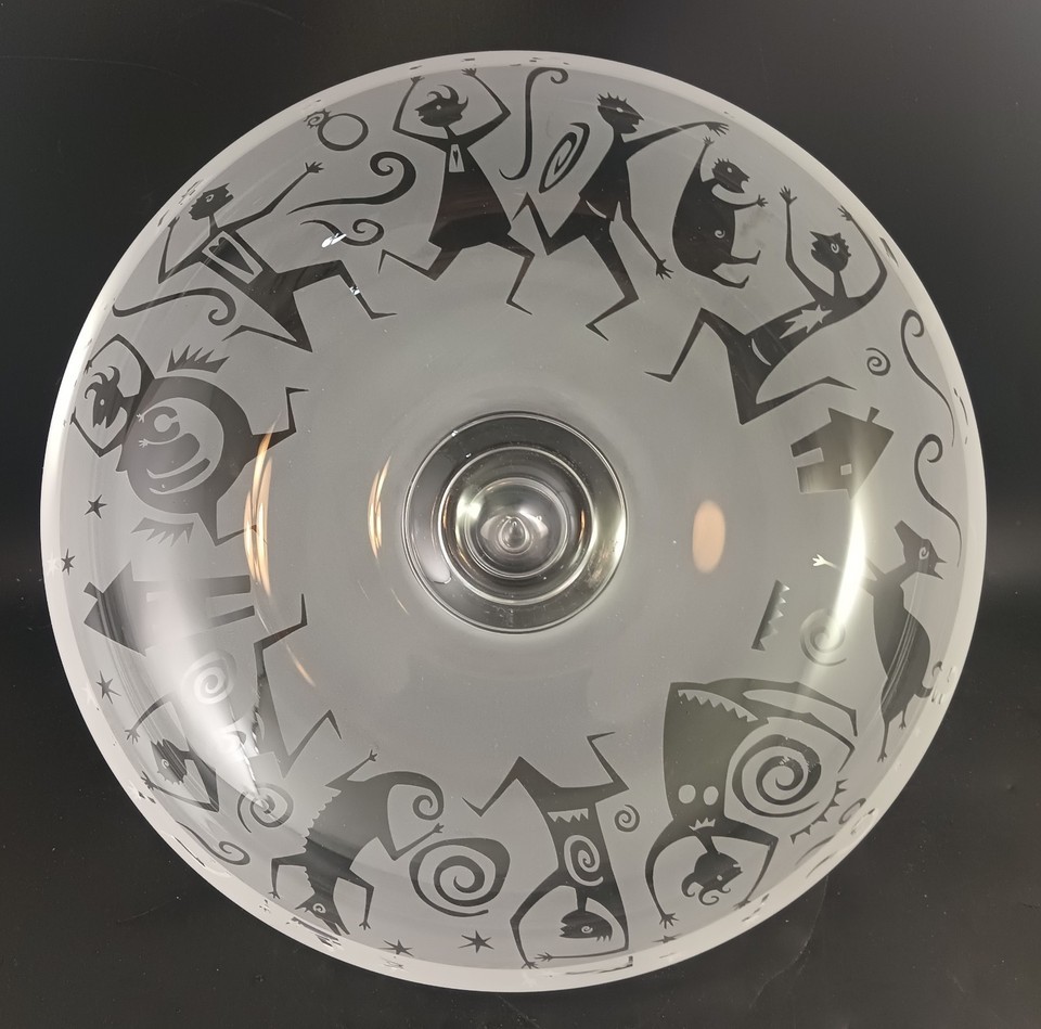 - Leandra Drumm Signed Etched Frosted Art Glass Wedding Bowl, OBO