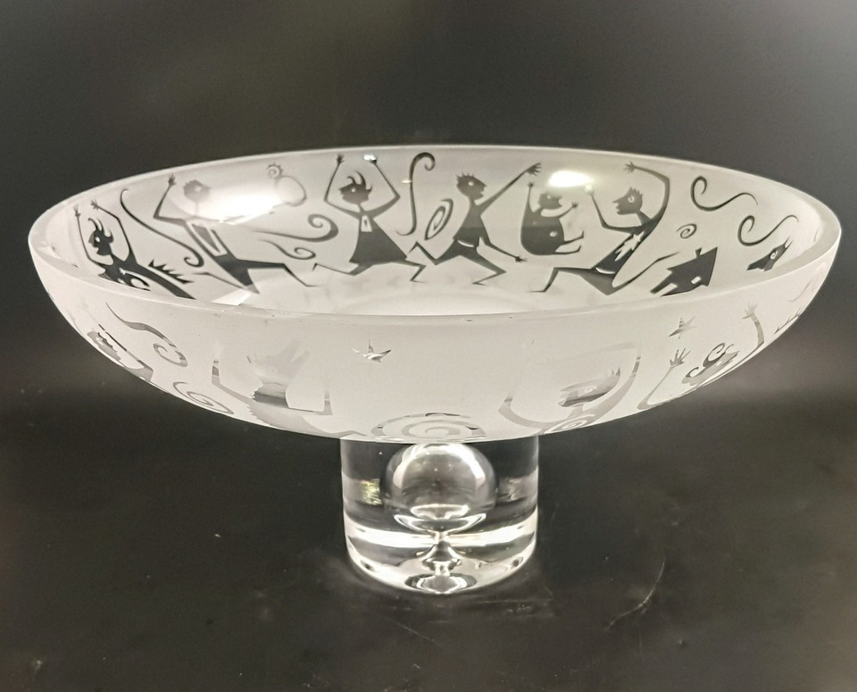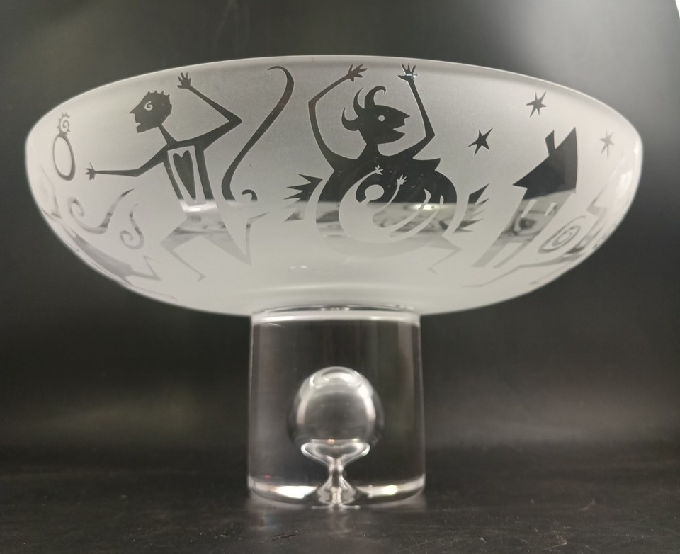 Leandra Drumm Signed Etched Frosted Art Glass Wedding Bowl, OBO