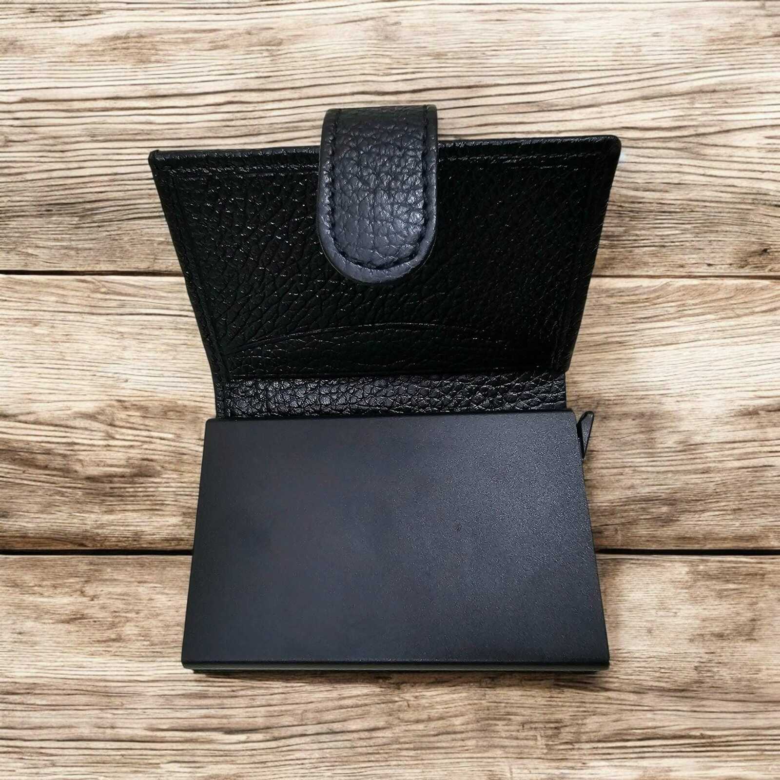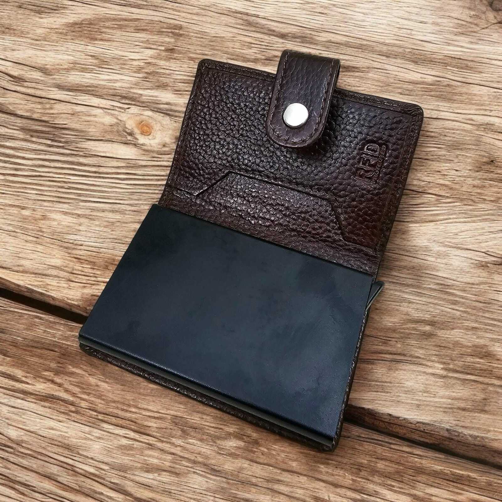 Made with genuine leather paired with a pop?up metal card case