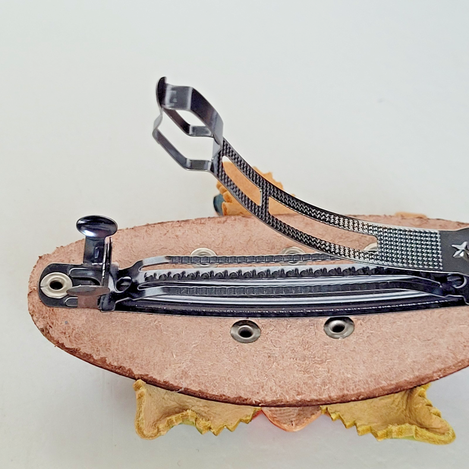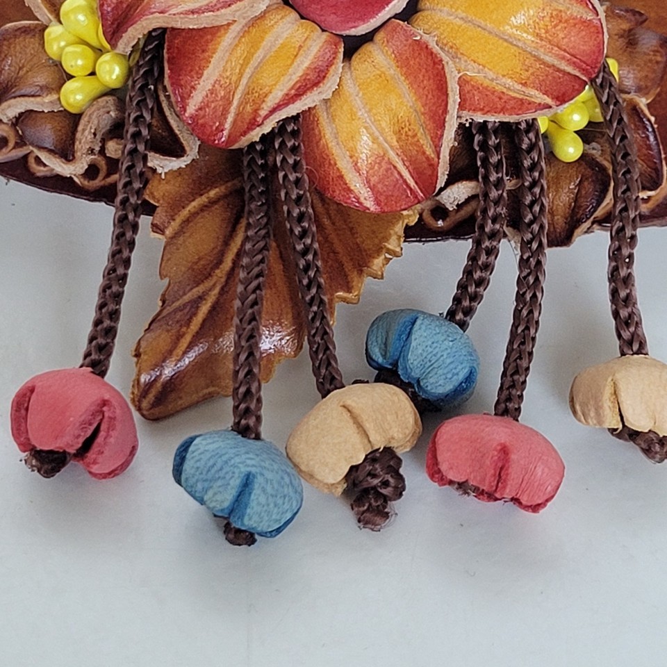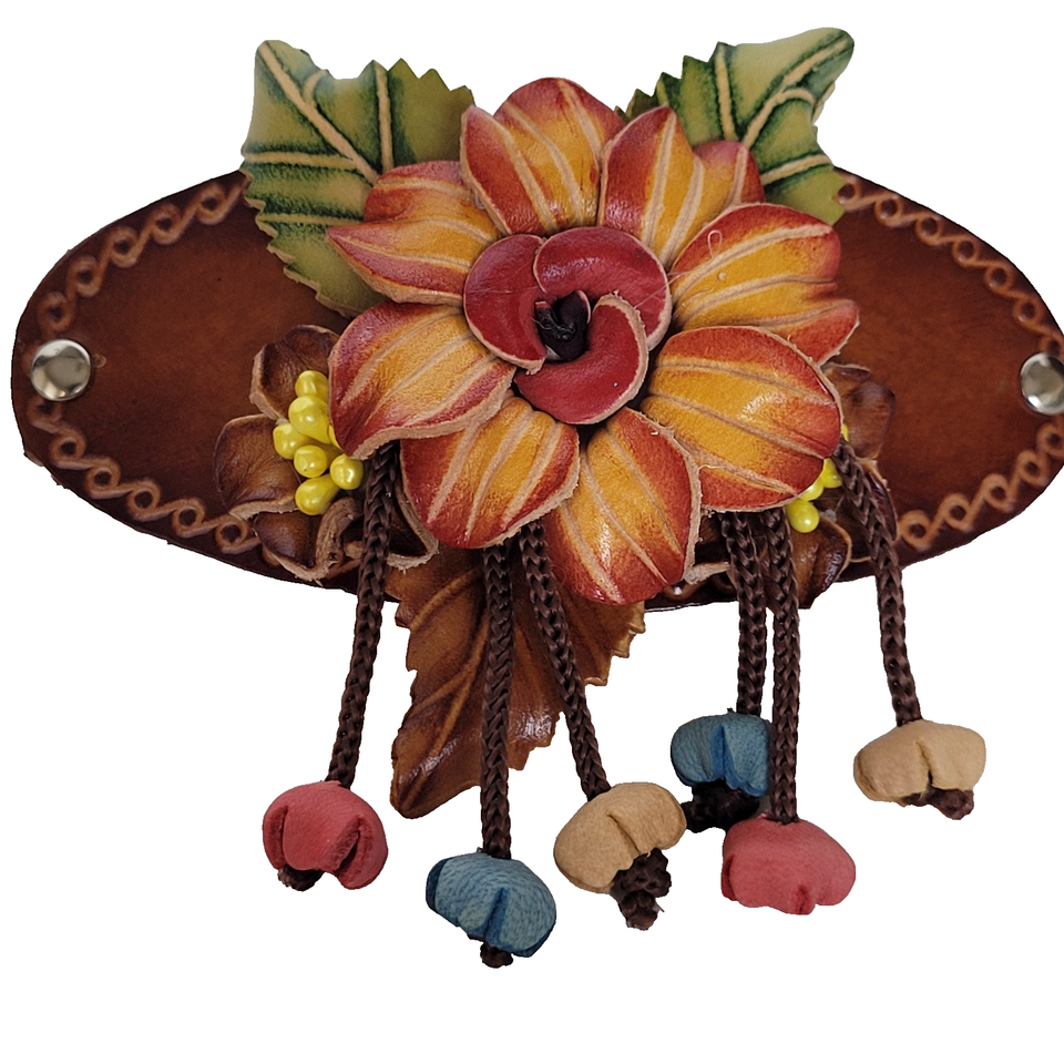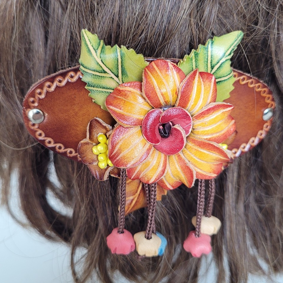 - Leather Flower Barrette Hair Clip Ponytail Holder Pony Hand Crafted Handmade