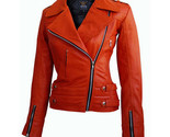- LEATHER SKIN WOMEN ORANGE BRANDO GENUINE LEATHER JACKET