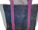 - Leather Spotted Hair on Hide Braided Handle Tote Bag Purse Purple Grey