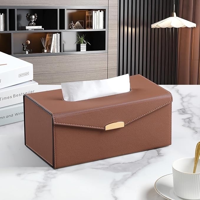 Premium PU Leather: Made from high-quality PU leather, this tissue box cover offers a chic look and is water-resistant, ensuring long-lasting durability.