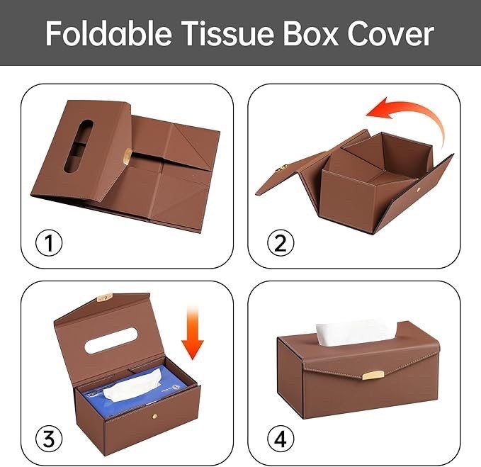 - Leather Tissue Box Cover Rectangle, Foldable Tissue Box Holder Home, Office