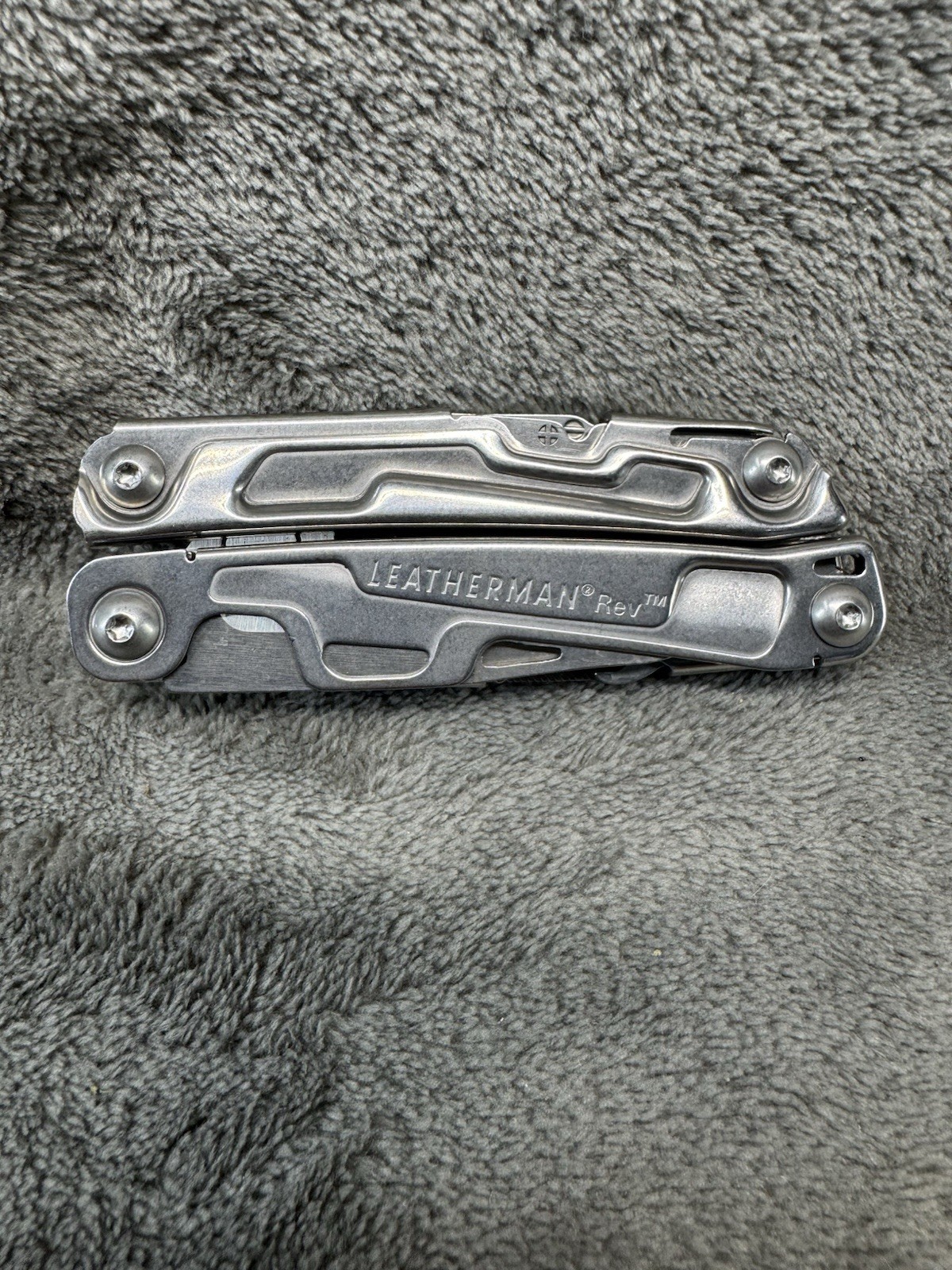 Leatherman Rev Multi-Tool Stainless Steel Knife Pliers SRP Logo