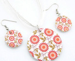 - LEAVES & SUNFLOWERS FLORAL WOODEN PENDANT WHITE RIBBON NECKLACE & EARRINGS SET