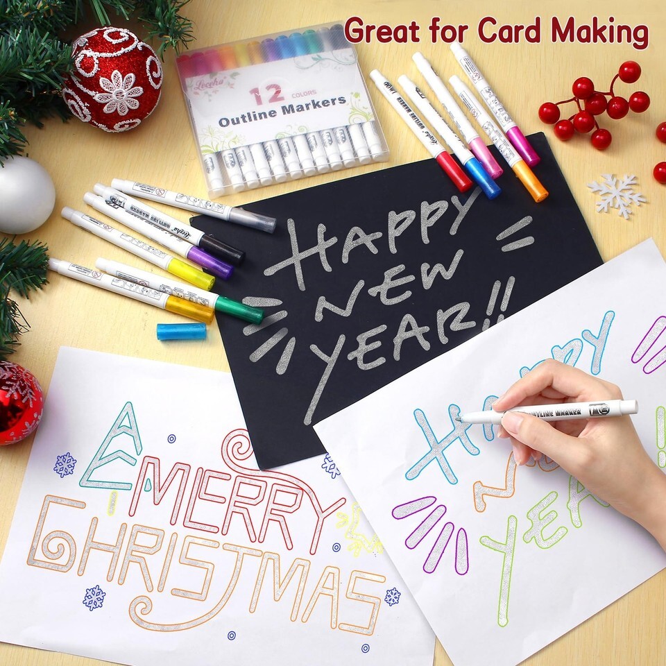 - Leceha Metallic Glitter Outline Markers Pens 12 Colors Drawing Kids Teens