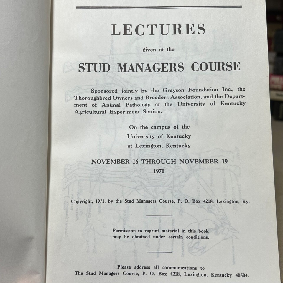 Lectures Stud Managers Course 1970 Publication Lexington Kentucky U.S.A.