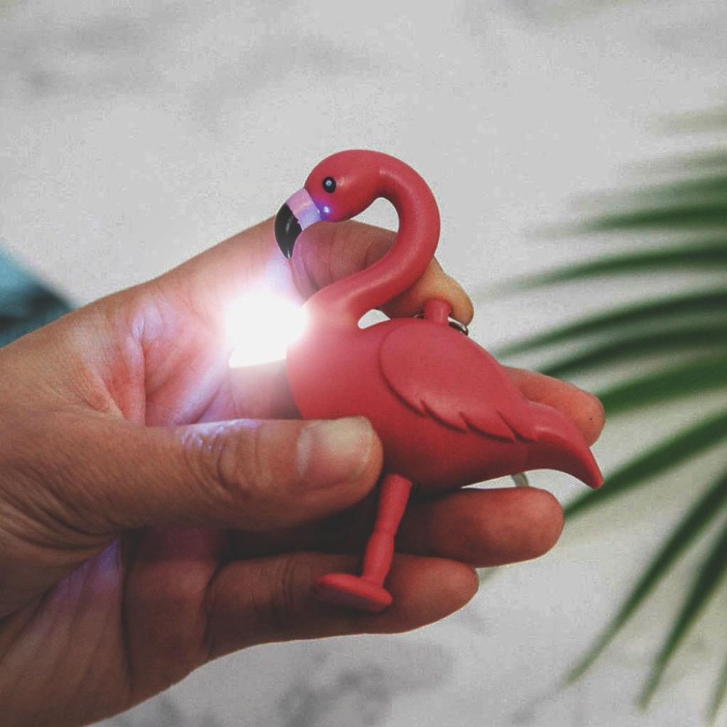 - LED FLAMINGO KEYCHAIN w Light and Sound Bird Pink Animal Cute Toy Key Ring Chain