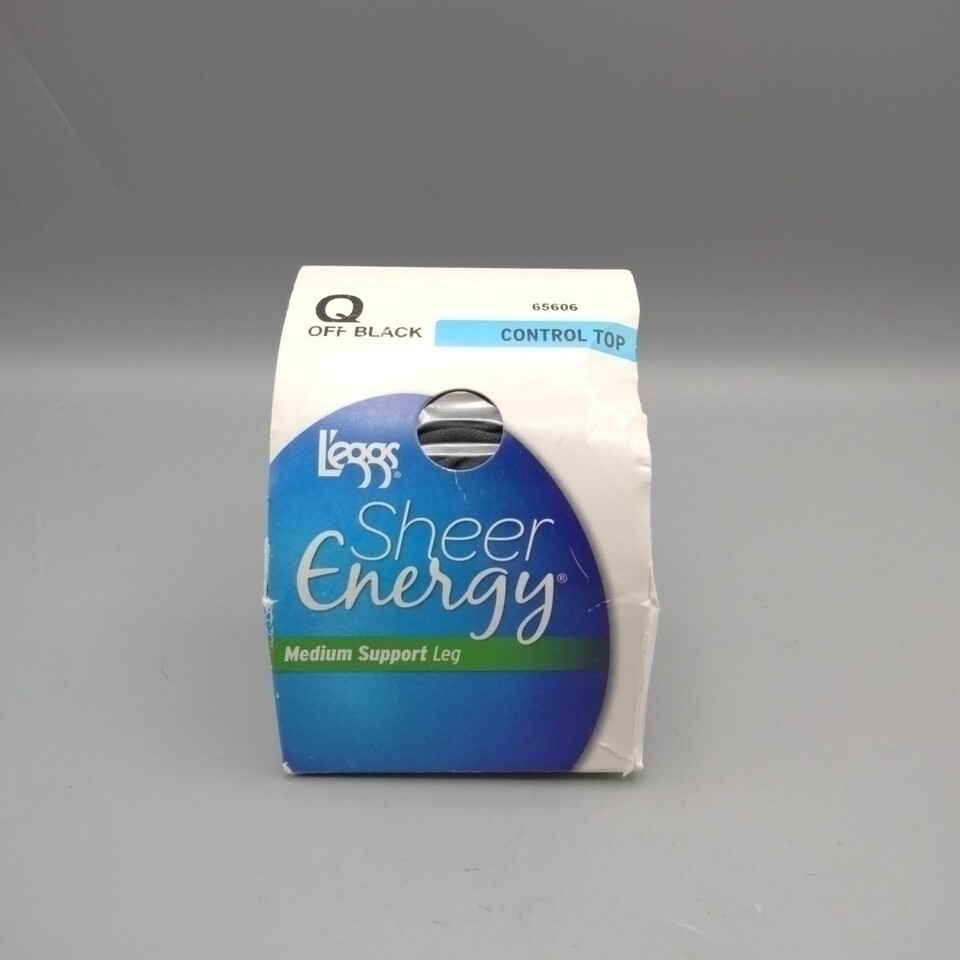 - Leggs Sheer Energy Pantyhose Sz Q Off Black Control Top Med Support Sealed