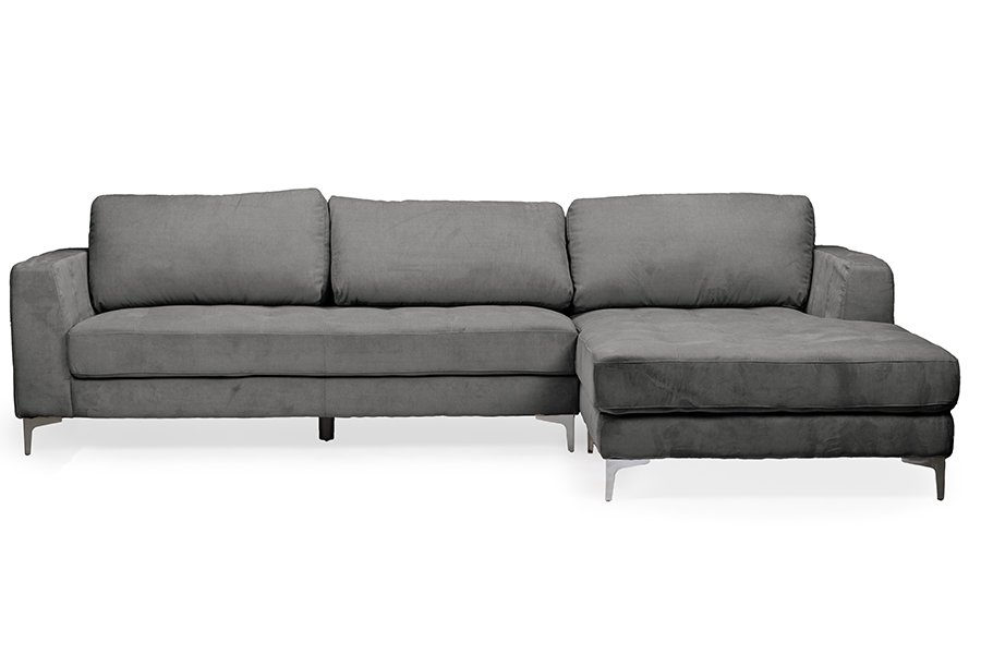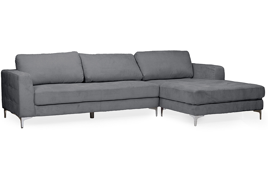 Features: Constructed from rubberwood, MDF wood, and LVL Walnut brown finish Grey microfiber upholstery Sturdy wood constructed frame Versatile Design to Compliment Any Home Decor Solid and Quality Construction Set Includes: One (1) Sectional Sofa