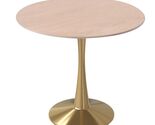 LeisureMod 27" Round Dining Table, Sintered Stone Top & Gold Pedestal Base Mid-C
