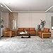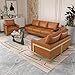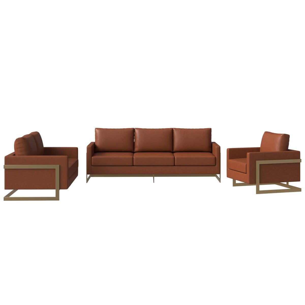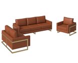 LeisureMod 3-Piece Sofa Set Upholstered in Leather with Gold Stainless Steel Bas