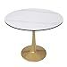 LeisureMod 35" Round Dining Table, Sintered Stone Top & Gold Pedestal Base Mid-C