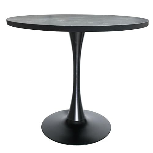 Bullet point: [DESIGN] The circular design of this dining table embodies contemporary style, imparting a chic and refined aesthetic that harmonizes with any modern setting. Versatile in nature, this round dining table effortlessly enhances the ambiance of any room.