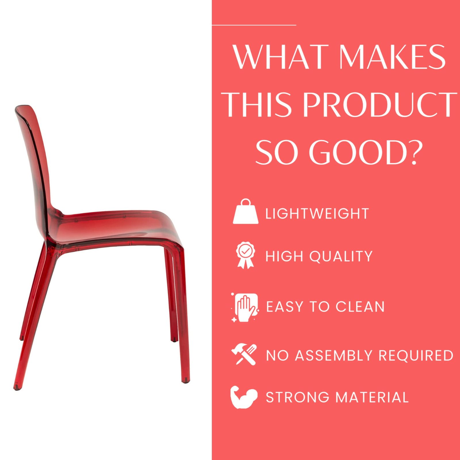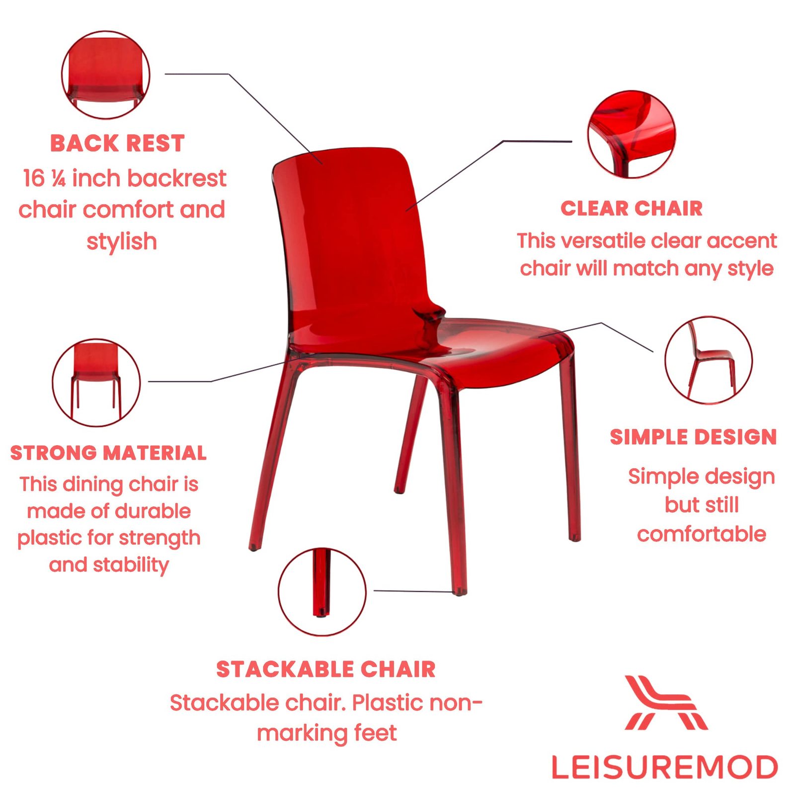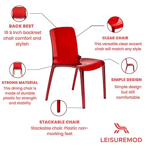 Primary image for LeisureMod Adler Murray Modern Plastic Dining Chair, Transparent Red