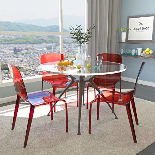 LeisureMod Adler Murray Modern Plastic Dining Chair, Transparent Red