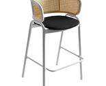 Bullet point: [LOW-BACK WICKER DESIGN] The bar stool features a low-back wicker backrest with a plastic back frame that enhances its durability. The wicker pattern is designed to be breathable, offering comfort and adding to its distinctive visual appeal. The structure is crafted to provide reliable support and a refined, airy design.