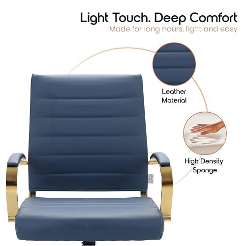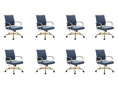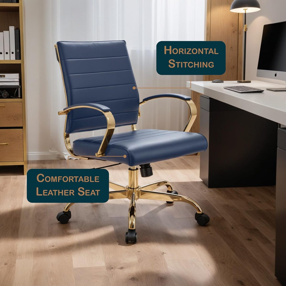 LeisureMod Benmar Leather Office Desk Chair, Mid-Back Ergonomic Swivel Chair wit