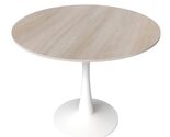 The Bristol round dining table is the perfect combination of modern mid-century design and functionality. It features a sleek iron base with a glossy finish that adds a touch of sophistication to any dining space. The pedestal base provides stability and balance, while the MDF round top provides a smooth and easy-to-clean surface that is perfect for meals and conversation. Whether you have a compact dining area or a spacious room, this dining table is designed to fit seamlessly into any space, offering both functionality and style. The easy-to-assemble design ensures that you can have it set up in minutes, allowing you to enjoy its stylish and functional design without any hassle. This modern round dining table is perfect for those who want to create a welcoming and comfortable dining area without sacrificing style or mobility. Whether you're setting up a cozy seating area in your kitchen or dining room or creating a welcoming ambiance in your cafe or restaurant, this modern round dining table is the perfect addition.