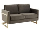 - LeisureMod Dark Grey Modern Mid-Century Upholstered Velvet Loveseat with Gold Fr