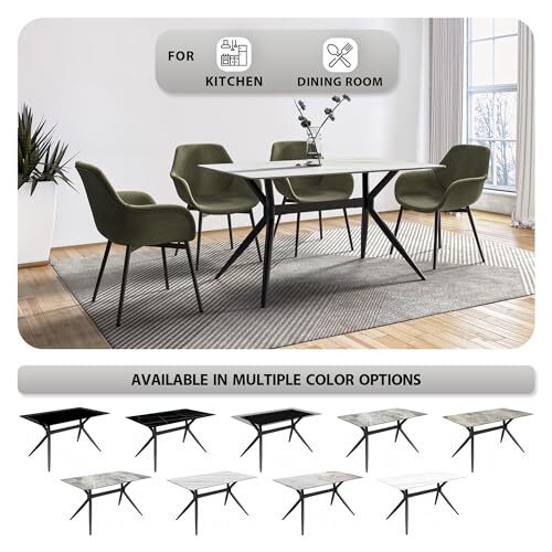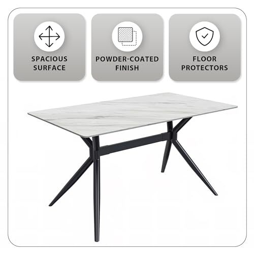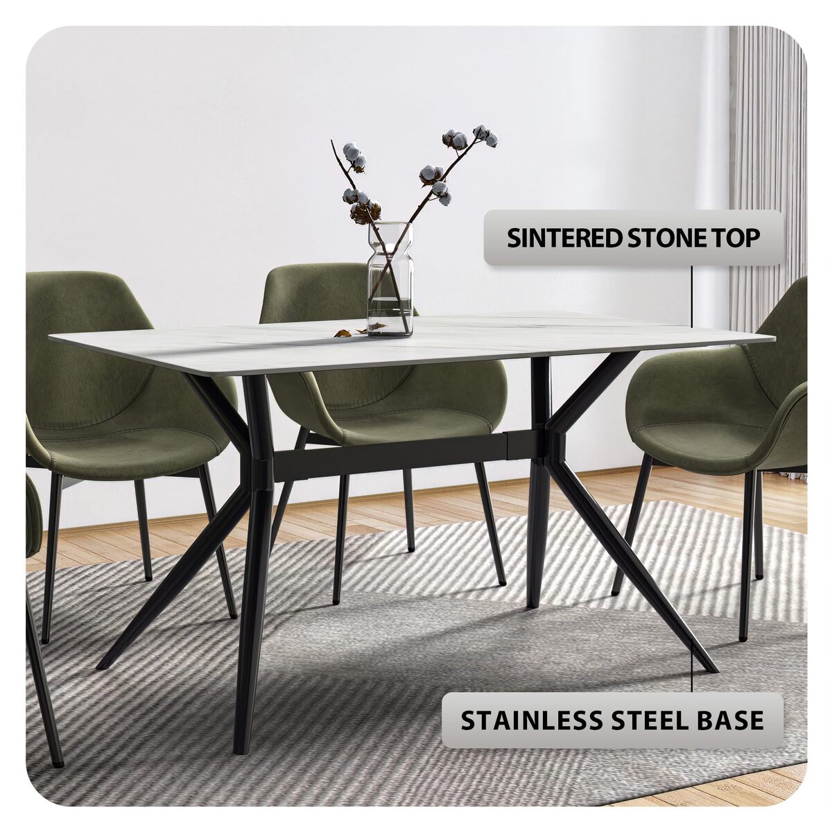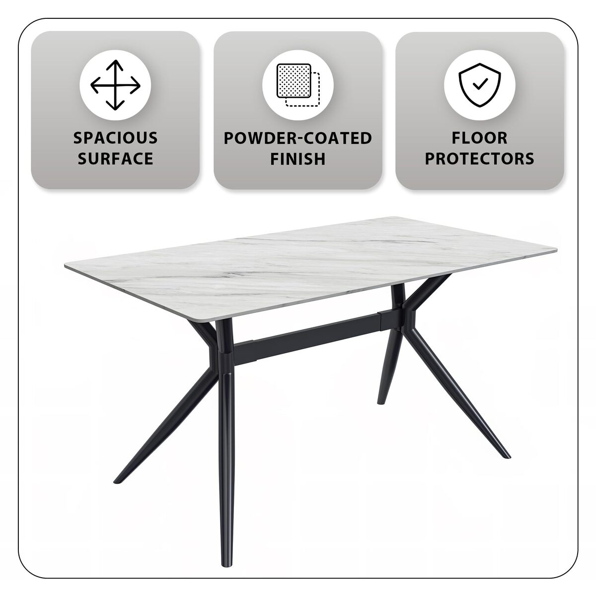 The LeisureMod Elega Series Modern Dining Table brings sleek allure to your dining space with its black steel base and wide rectangular sintered stone tabletop. This fusion of modern design and enduring durability makes every meal a comfortable and stylish experience. The fixed height design guarantees unwavering stability. Easy assembly and an easy-to-clean surface make it ideal for memorable gatherings. This contemporary dining table showcases clean lines and a minimalist style to serve as a chic centerpiece. Supported by a robust black steel base, it ensures exceptional durability with a maximum capacity of 440 lbs. The spacious surface provides ample room for meals, decorations, and entertainment. The durable sintered stone top provides heat and scratch resistance, ideal for frequent use. Grub screw installation adds extra stability, ensuring it stays secure and steady. Maintenance is straightforward, requiring only a simple wipe clean. Dimensions: 55-Inch: 29.9" H x 55.11" W x 31.5" D, 62-Inch: 29.9" H x 62" W x 31.5" D, 71-Inch: 29.9" H x 71" W x 35.43" D. Weight: Varies by size. Assembly is straightforward with included instructions, so you can quickly enjoy this dining table's benefits. LeisureMod promises quality craftsmanship and stylish designs that complement your home. Add sophistication to your dining room with this exceptional piece. Place your order now and redefine your dining experience!
