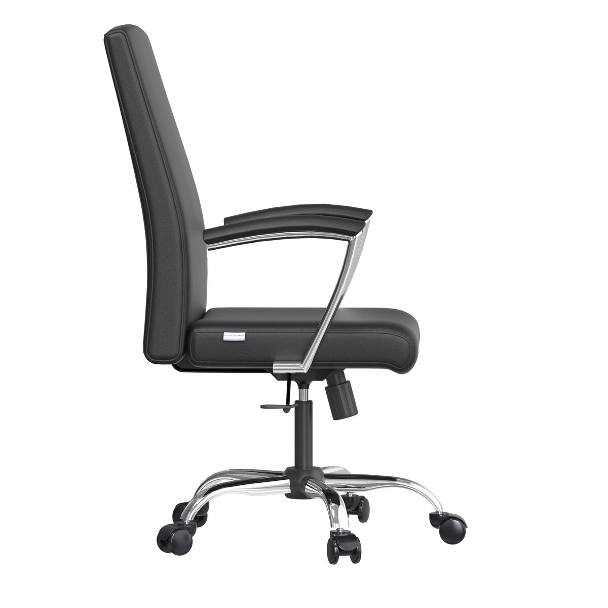 Introducing the Evander Modern Office Chair seamlessly combines classic design with contemporary functionality. This carefully crafted chair not only enhances the modern workspace with its sophisticated look but also delivers an unmatched level of comfort and versatility. Featuring distinctive elements such as a tilting design with upholstery, an aluminum frame, faux leather covering, foam-filled, fixed arms, swivel capability, and straightforward assembly requirements, the Evander office chair is set to elevate your office experience. The faux leather's supple texture not only adds to the chair's visual appeal but also ensures easy upkeep. Supported by a sturdy silver aluminum frame, symbolizing durability and stability, the office chair is designed with user comfort in focus, providing fixed armrests for forearm support, and reducing tension in the shoulders and neck. The office chair's adjustable height feature allows users to customize it to their preferred level, ensuring optimal comfort and adaptability to different desk setups. With clear and concise assembly instructions, the user-friendly process enables individuals to efficiently set up their office chairs without unnecessary complications.
