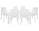 LeisureMod Kent Mid-Century Modern Weave Design 7-Piece Outdoor Dining Set Plast