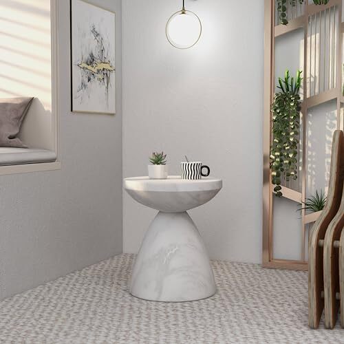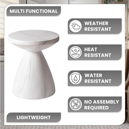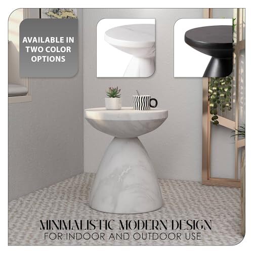 Bullet point: [SLEEK MODERN DESIGN] Upgrade your home with the LeisureMod Dune Modern Side Table. Its sleek, round fiberstone top adds elegance to any room. The modern design fits both contemporary and traditional interiors. Stylish and functional, this versatile side table is perfect for any space.