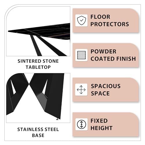 Introducing our stylish dining table, designed to infuse a modern atmosphere into your kitchen or dining space. Its sleek rectangular shape and clean lines perfectly complement contemporary homes. Built with durability in focus, it comes with a sleek rectangular shaped steel base and offers the option of a glass or sintered stone tabletop. This table is made to elevate your dining experience with ease and sophistication. Choose between a sintered stone or glass top, both of which offer a combination of durability and elegance. The sintered stone surface offers both heat and scratch resistance, while the glass top enhances sophistication by beautifully reflecting light, creating a visually striking dining space. Meticulously crafted with a powder-coated steel base that's all about durability and stability for your everyday dining. Designed to endure the demands of daily life, this steel base can support up to 440 lbs, ensuring that your dining experience is not only reliable but also long-lasting. With our versatile dining table built to serve a variety of purposes throughout your home, whether it's the focal point of your dining room, adds functionality to your kitchen, or creates a cozy vibe in your breakfast nook. Its exceptional versatility enhances every dining occasion, ensuring each moment is more enjoyable and fulfilling. Keeping our dining table looking pristine is a breeze. Just a quick wipe-down with a dry or damp cloth is all it takes to maintain its immaculate appearance. This simple cleaning routine ensures that your table stays flawless with minimal effort. Featuring a generous rectangular surface, our dining room table provides ample room for both everyday dining and special gatherings. Its expansive top offers abundant space for dishes, drinks, and decor, allowing you to entertain guests with ease and sophistication. Assembling our contemporary dining table is a breeze, thanks to the straightforward process outlined in the included instructions. You can effortlessly put together your table in no time, ensuring that you can start enjoying its benefits without any delay. "