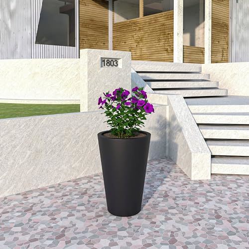Available in four distinct sizes and three stylish color options to choose from, this planter empowers you to create a captivating display that complements your existing decor and perfectly showcases your greenery. Crafted from a durable blend of fiberstone and MGO clay, this exquisite planter is designed to withstand the test of time. Designed for versatility and convenience, this planter seamlessly transitions between indoor and outdoor settings. This planter is meticulously designed to ensure your plants thrive. It has strategically placed drainage holes to facilitate efficient water drainage. The tapered round shape of this planter offers a timeless aesthetic that complements a variety of plants and decor styles. To offer enhanced protection and durability, a cover is included with the planter, shielding your plants from harsh weather conditions. No assembly required! This planter arrives ready to use, saving you valuable time and effort. Simply unpack, add your favorite plant, and watch your space transform with a touch of modern elegance.