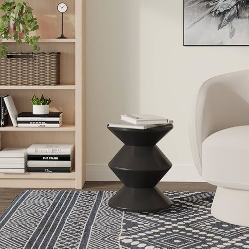 Add a touch of modern elegance to your space with this uniquely designed Aura Modern Side Table. Its sleek form and practical features make it the perfect blend of style and function. The double-hourglass design features two hourglass shapes joined at the center, creating a distinct and contemporary look. Its flat top offers a solid surface for drinks, books, or decor, while the stable pedestal base provides reliable support. Measuring 17.72 inches high and 14.37 inches wide, this compact and lightweight table fits easily into smaller spaces and is easy to move. Crafted from durable ABS plastic, it holds up to 330 pounds and resists scratches and wear. With a water-resistant finish, it's ideal for indoor or outdoor use and cleans easily with a simple wipe. Best of all, it arrives fully assembledjust place and enjoy. Whether indoors or outdoors, this versatile, low-maintenance table is ready to elevate your decorno assembly required, just instant sophistication.