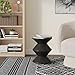 Bullet point: [DOUBLE- HOURGLASS DESIGN] This side table features a double-hourglass shape, where two hourglass forms are joined at the center, giving it a distinct and modern appearance. The flat top provides a smooth and solid surface, suitable for placing items like drinks, books, plants, or decorative pieces. The pedestal base is stable and sturdy, offering strong support for the table on any surface.