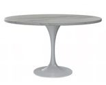 The central feature of the dining table revolves around its distinct circular tabletop design. The circular form fosters a friendly ambiance, facilitating effortless conversation and ensuring a pleasant dining encounter. The tabletop is crafted from Resin, a cutting-edge material known for its durability and sophisticated appearance. Resin combines the best of style and functionality, offering resistance to stains. Providing a sturdy foundation for the stylish tabletop is the white stainless steel pedestal base. Stainless steel is known for its durability, making it an ideal material for a piece of furniture that is meant to withstand the test of time. The stainless steel base is adorned with a powder-coated finish in a pristine white color. The powder coating enhances the base's resistance to scratches and corrosion, ensuring that your table retains its polished look for years to come. The Dining Table features a well-proportioned round pedestal base. Beyond its stability, this design choice contributes to the overall aesthetic of the table creating a dining space that is both inviting and visually appealing. A quick spot clean with a dry cloth is all that is required to keep the dining table free from dust, spills, and stains. This easy maintenance routine allows you to enjoy the beauty of the table without the hassle of extensive cleaning. The package includes comprehensive instructions along with all the necessary hardware. With minimal effort, you can have this stunning dining table assembled and ready for use