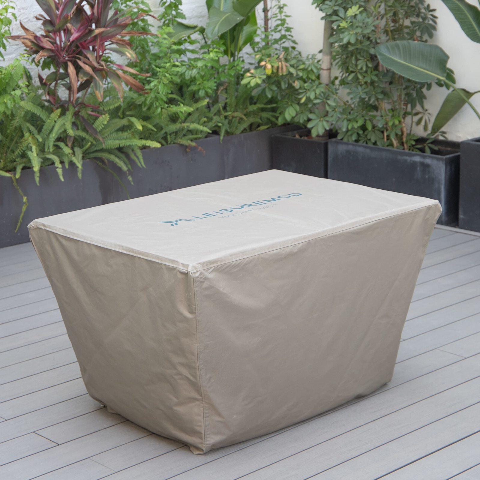 LeisureMod Waterproof Heavy Duty Fire Pit Table Cover, Brown Rectangle Outdoor C