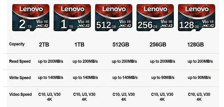 - Lenovo Memory Card 1TB 2TB High Speed Micro TF SD Card 512GB SD Card V60 U3 TF C