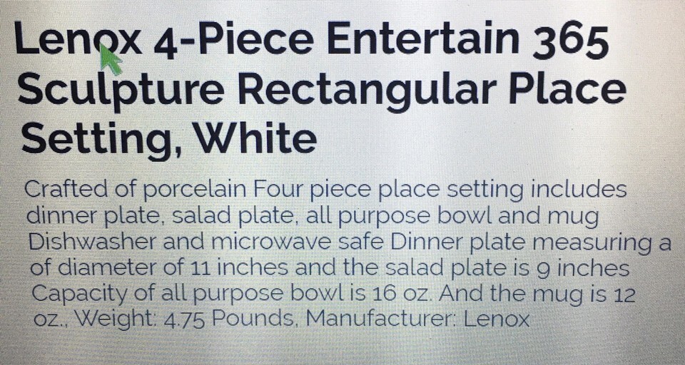 - LENOX 365 SCULPTURE RECTANGULAR 4pc WHITE BNIB RARE $100