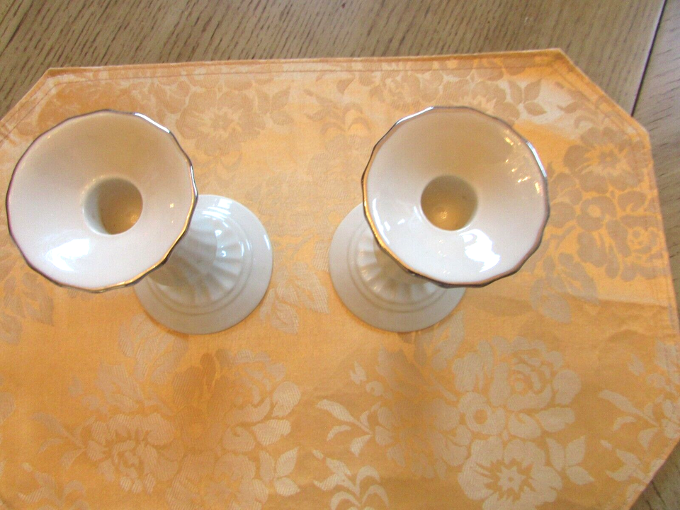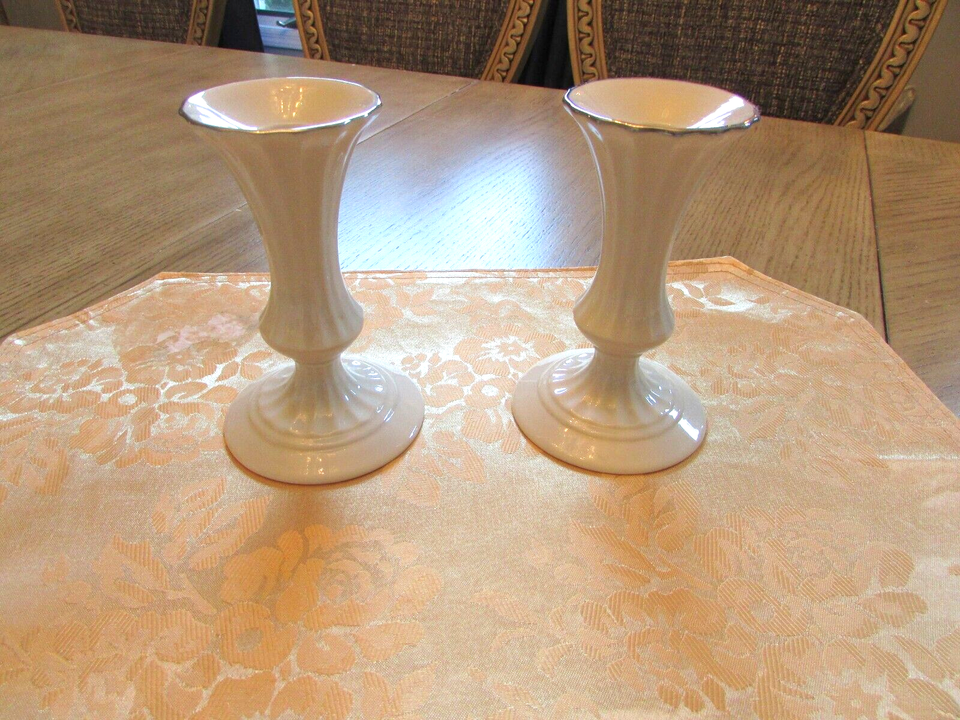 - Lenox Bone China Platinum Rimmed Taper Candlestick Holder "Special" USA 5.5"