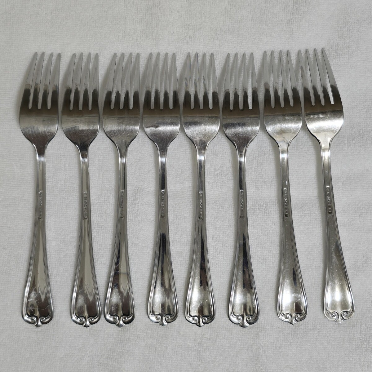 - Lenox Butlers Gourmet 18/8 Dinner Forks Set of 8 Outlined Plume Tip 8 1/4" READ